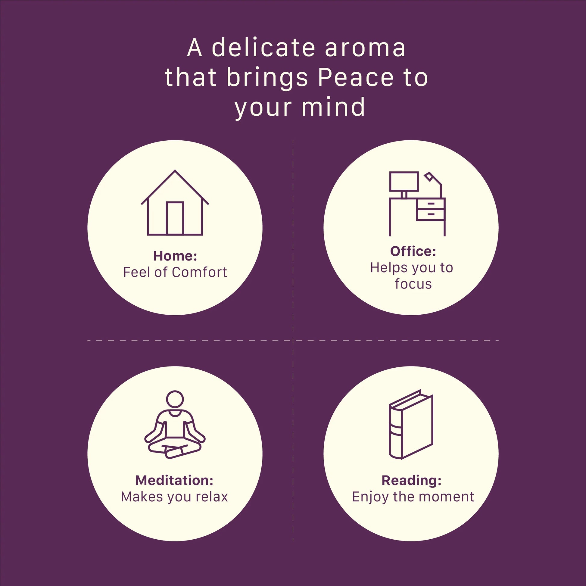 - Charcoal-free incense sticks for a safe, clean, and toxin-free burn