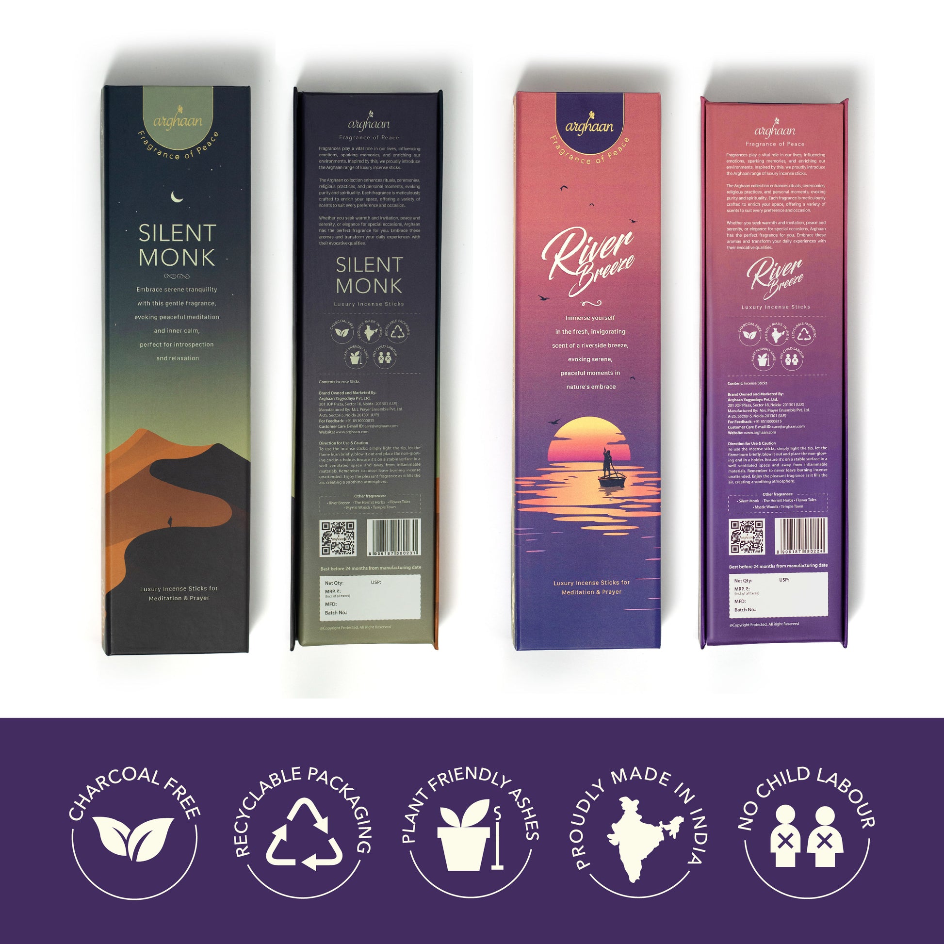 Proudly Made in India Arghaan embodies the essence of Indian tradition and craftsmanship. Every stick reflects our heritage, crafted with love and authenticity to bring purity and positivity to your space." |