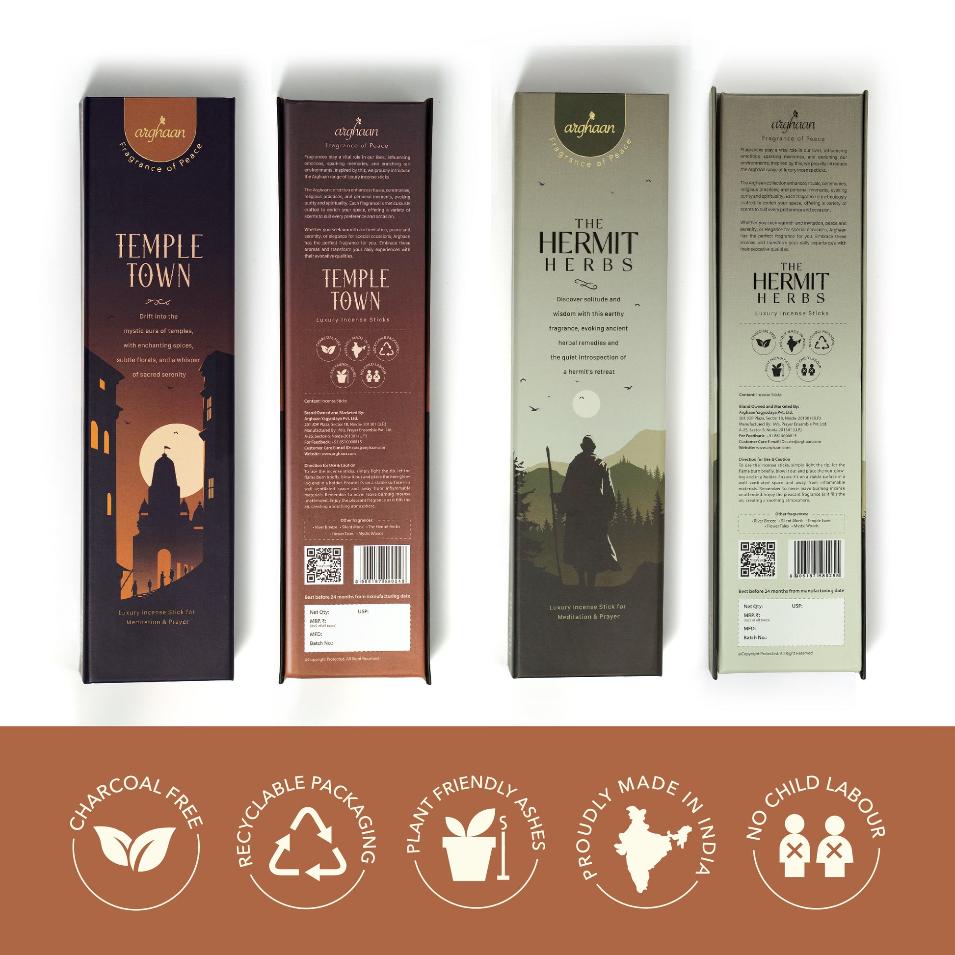 Proudly Made in India Arghaan embodies the essence of Indian tradition and craftsmanship. Every stick reflects our heritage, crafted with love and authenticity to bring purity and positivity to your space." |