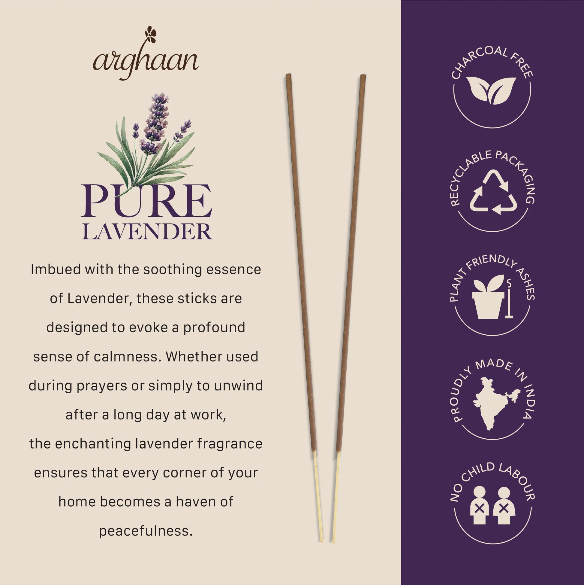 Perfect for prayer, meditation, or unwinding after a long day, Arghaan Lavender offers one of the best incense experiences for stress relief and tranquility. The gentle, floral aroma promotes emotional balance, helping you create a haven of peacefulness within your home.