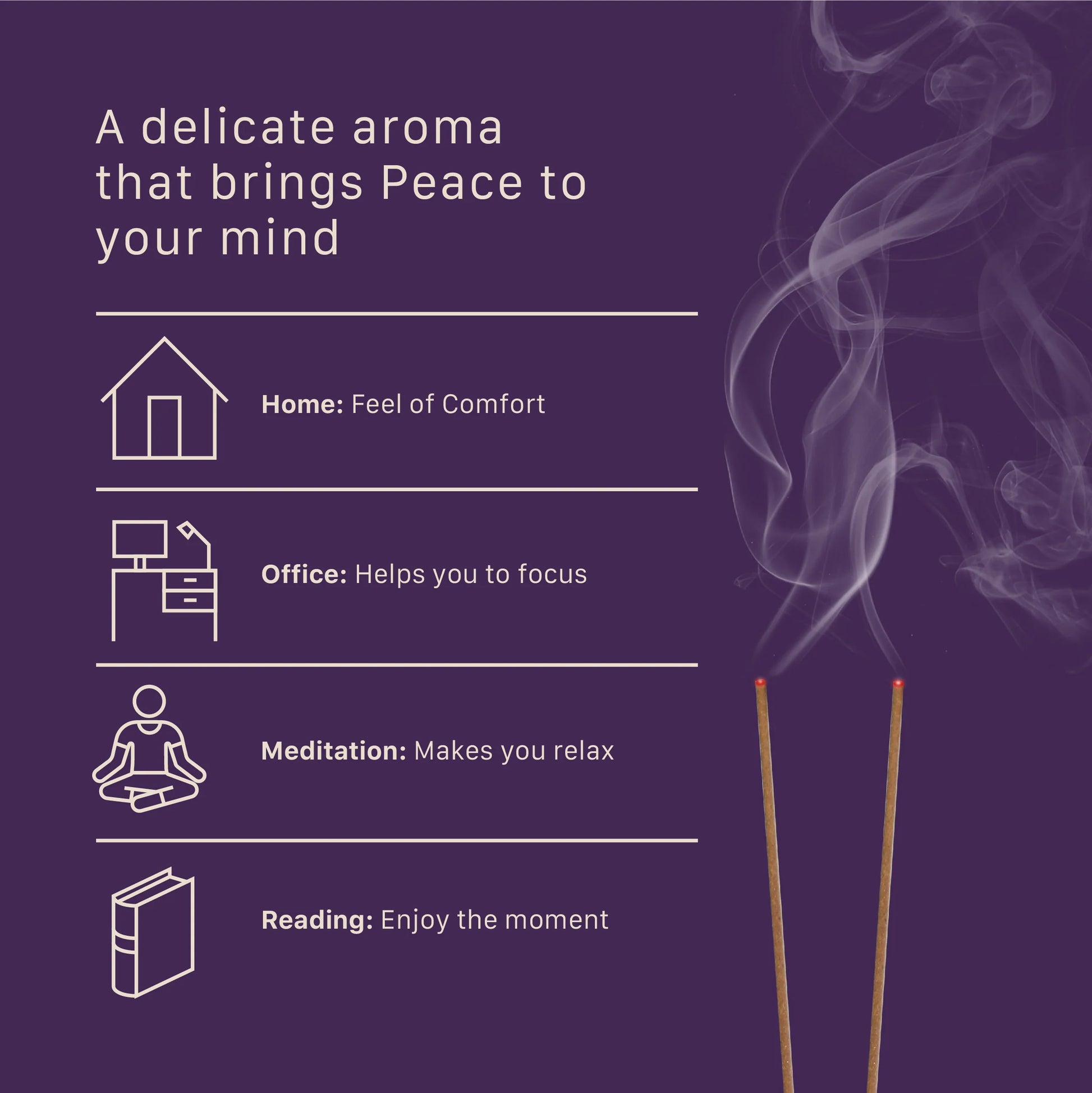 - Charcoal-free incense sticks for a clean, toxin-free burn