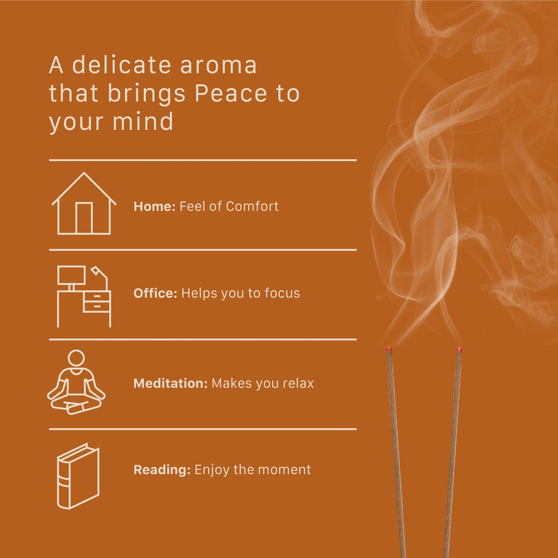 - Charcoal-free incense sticks for a clean, eco-conscious burn
